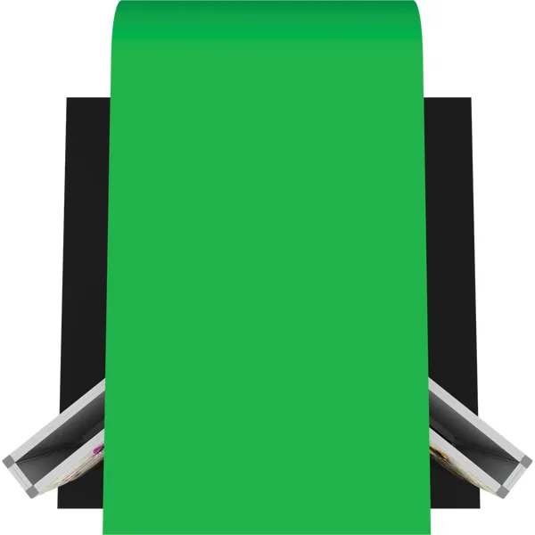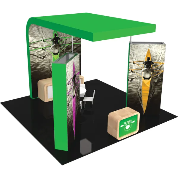 – Two double-sided fabric graphic walls set at a 45 degree angle