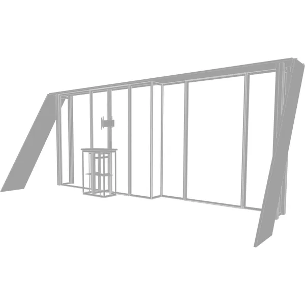 – Reconfigurable into 10’x10′ inline display – additional components may be required