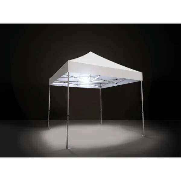 The Zoom Tent Light Kit provides attention-grabbing illumination to popup tents at outdoor venues and events! The Zoom Tent Light Kit is USB battery powered (USB battery/charger not included) and the lights include built-in magnets for quick connection to steel frames and hook & loop for connection to aluminum frames. Lights attach to frame easily. Compatible with most 5ft, 10ft and 20ft tents. Battery-USB charger not included.